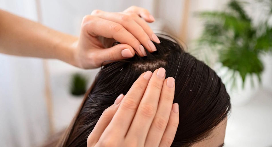 - Massez toujours le cuir chevelu du bout des doigts, doucement, sans griffer.